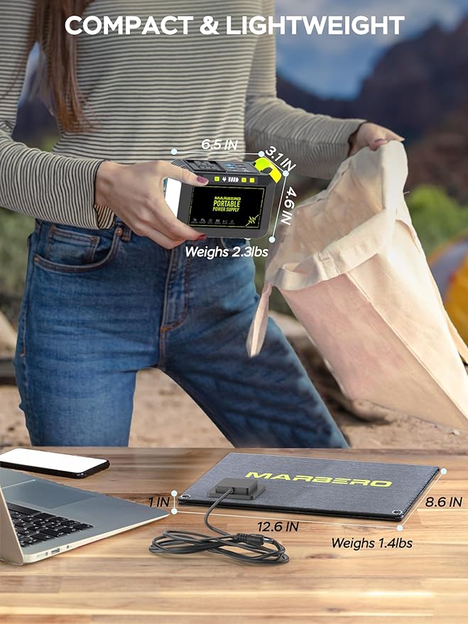 MARBERO 88.8Wh Solar Generator with 21W Solar Panel Included Portable Power Station 80W 110V 120W Max for Camping Outdoor Hiking Fishing Emergency